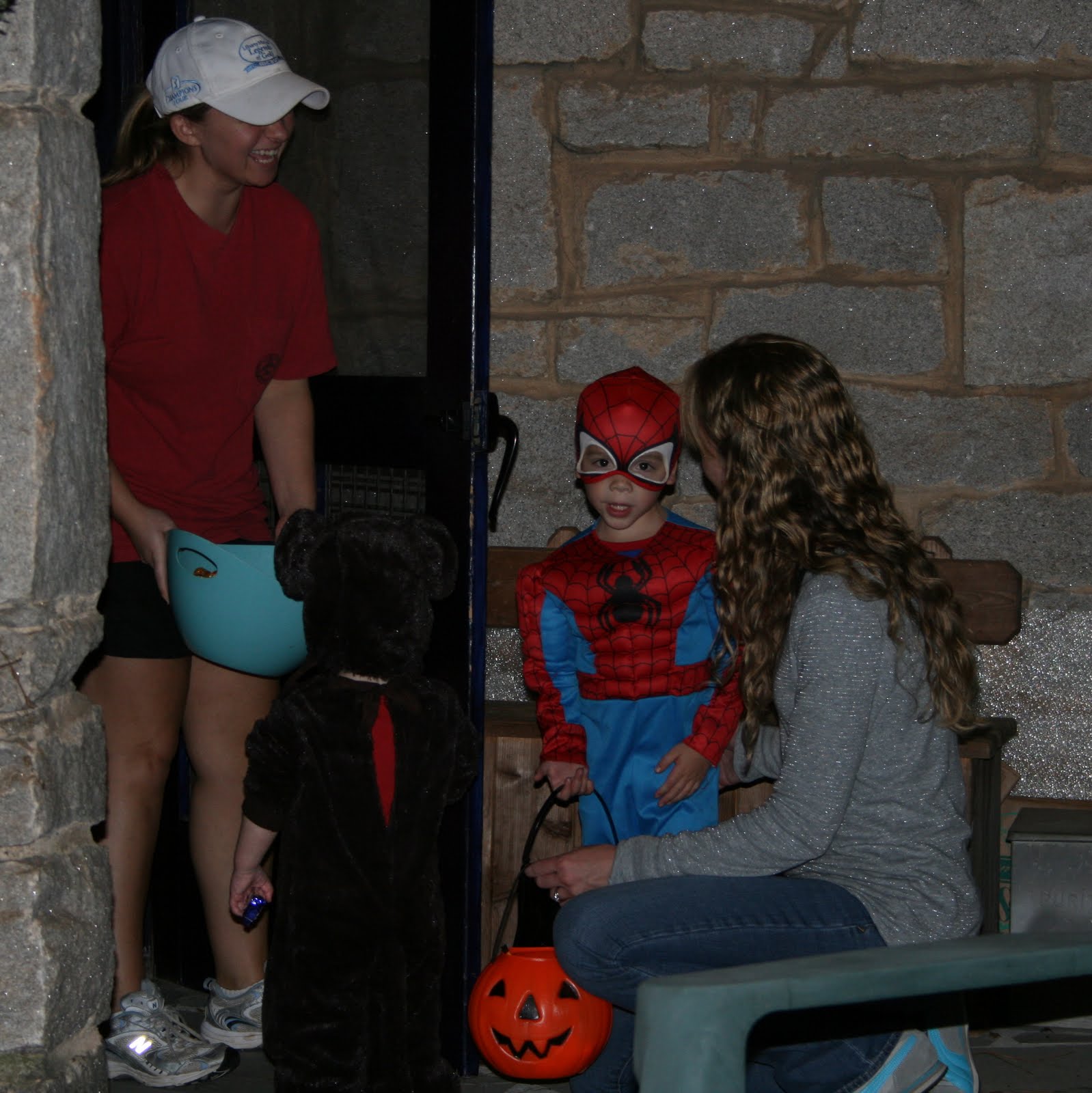 After suffering through a couple of pictures, Spiderman and the little monkey were anxious to head off to their pre-Trick-or-Treating party. Let's go!